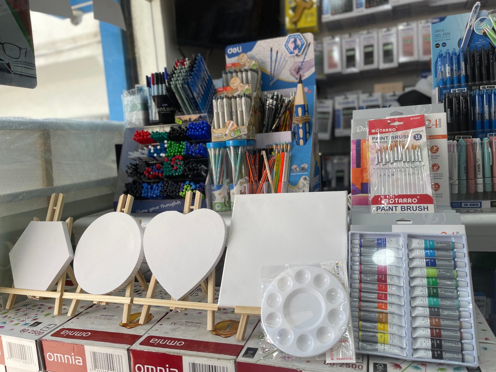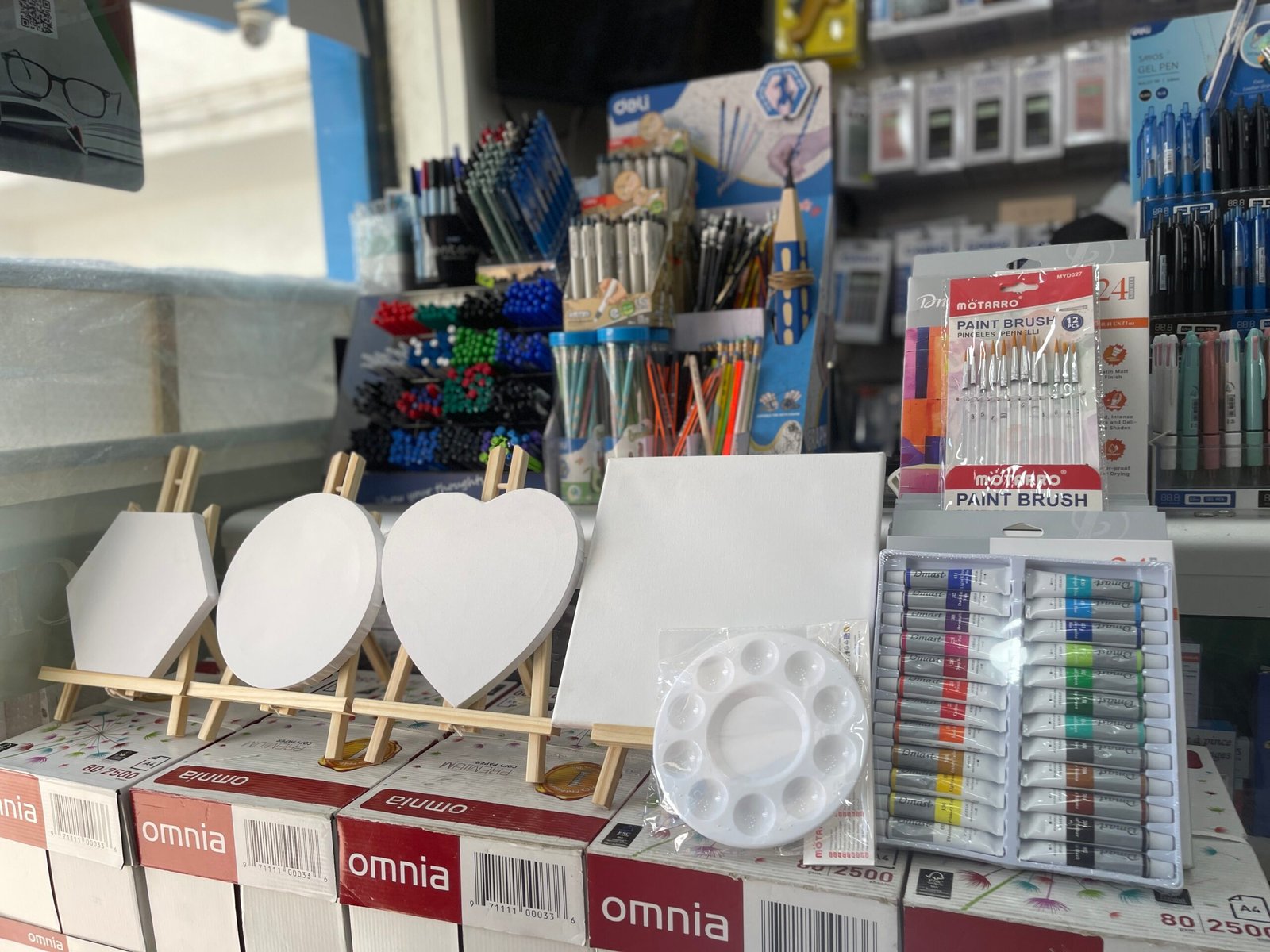 - 4 Châssis Entoilés (Formes Uniques) : Cœur, Hexagone, Rond et Carré. Chaque toile est livrée avec son mini-chevalet en bois pour une expo immédiate.